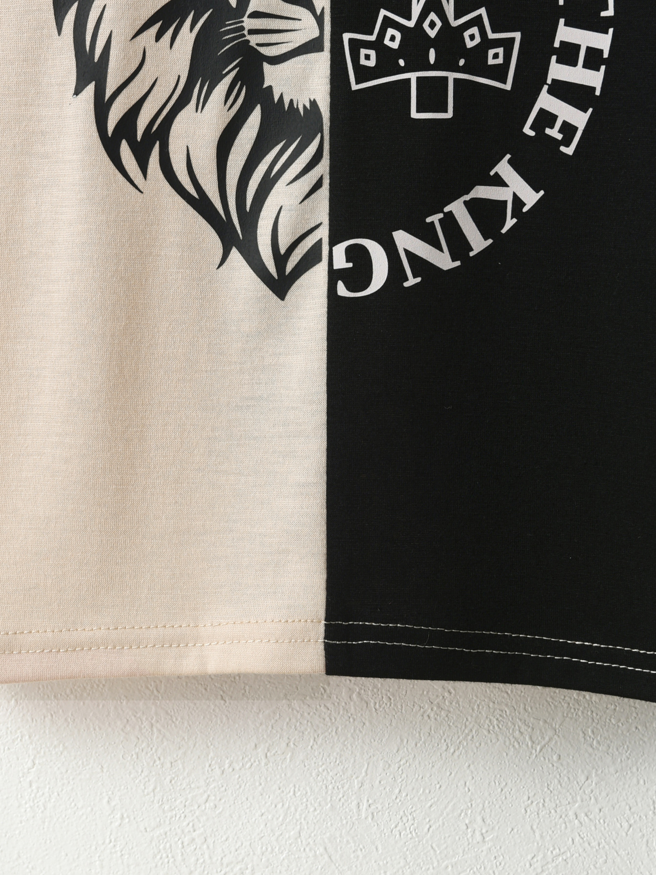 0|Boys' summer round-neck short-sleeved color-blocking comfortable and breathable T-shirt suitable for daily activities + the same color-blocking shorts