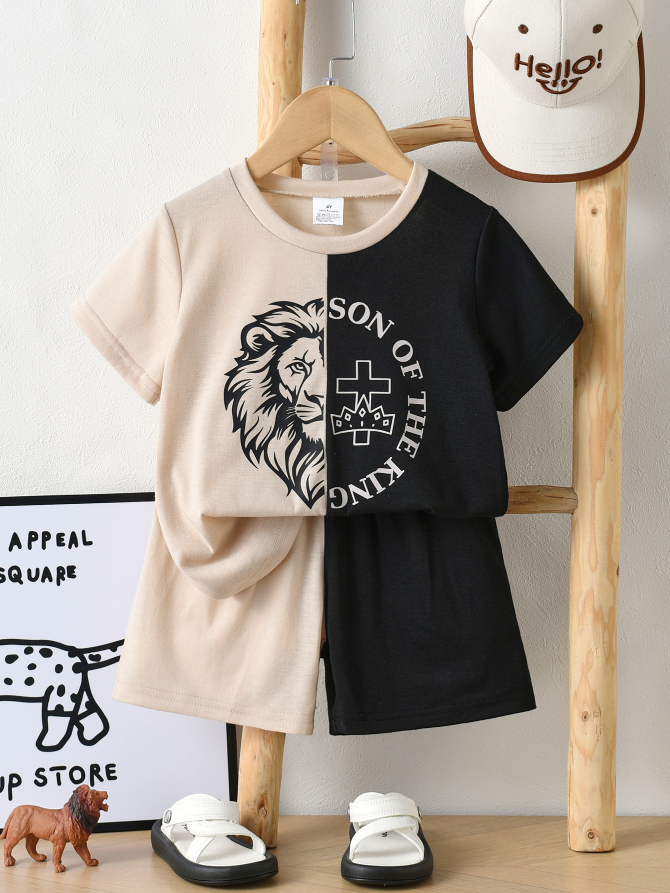 Boys' summer round-neck short-sleeved color-blocking comfortable and breathable T-shirt suitable for daily activities + the same color-blocking shorts